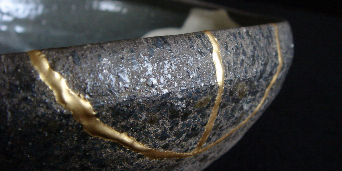 Barbara Bloom writes, “When the Japanese mend broken objects, they aggrandize the damage by filling the cracks with gold. They believe that when something’s suffered damage and has a history it becomes more beautiful.”